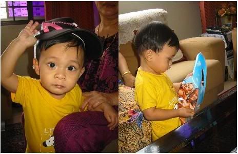 and here's a pic of my lovable nephew, Shukrey, in my cap and looking at gerls.. his past-time.. hahahaaa kiddin!